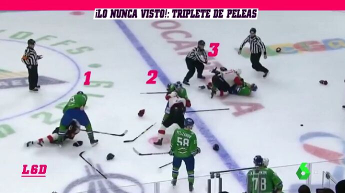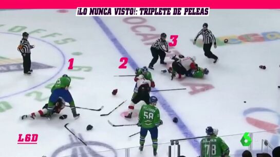 Lo nunca visto en el hockey hielo: triple pelea simultánea en mitad de un partido