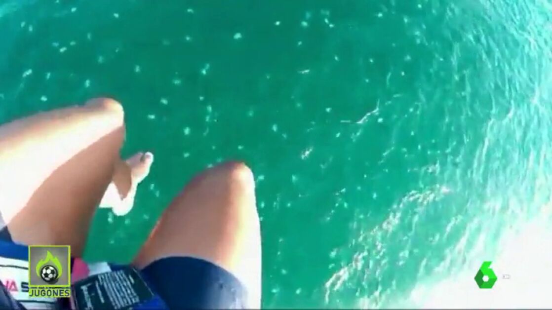 Estas imágenes han tenido lugar en Bulgaria. Cuando se disponen a aterrizar, se percatan de que en el agua les espera un banco de medusas.