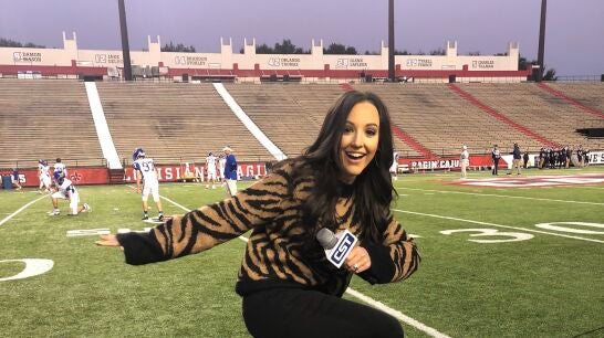 La periodista, además, era la mujer de uno de los jugadores de dicho encuentro, hijo a su vez de Steve Ensminger, coordinador ofensivo y entrenador de los quaterbacks del equipo de la Universidad de Louisiana State.