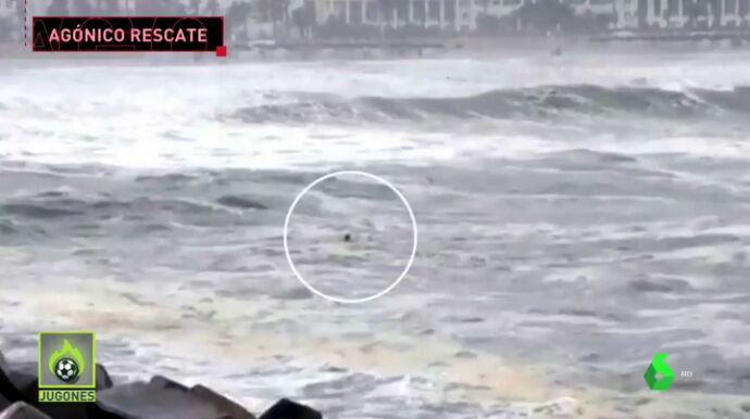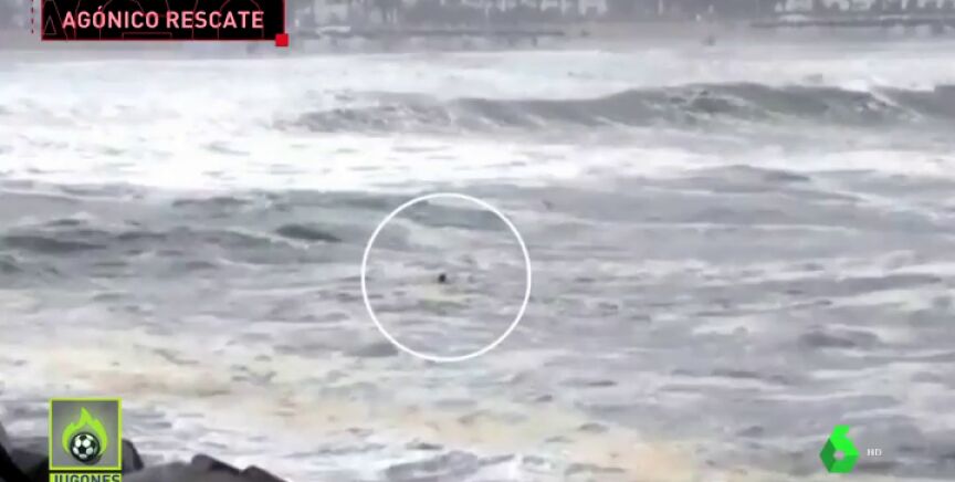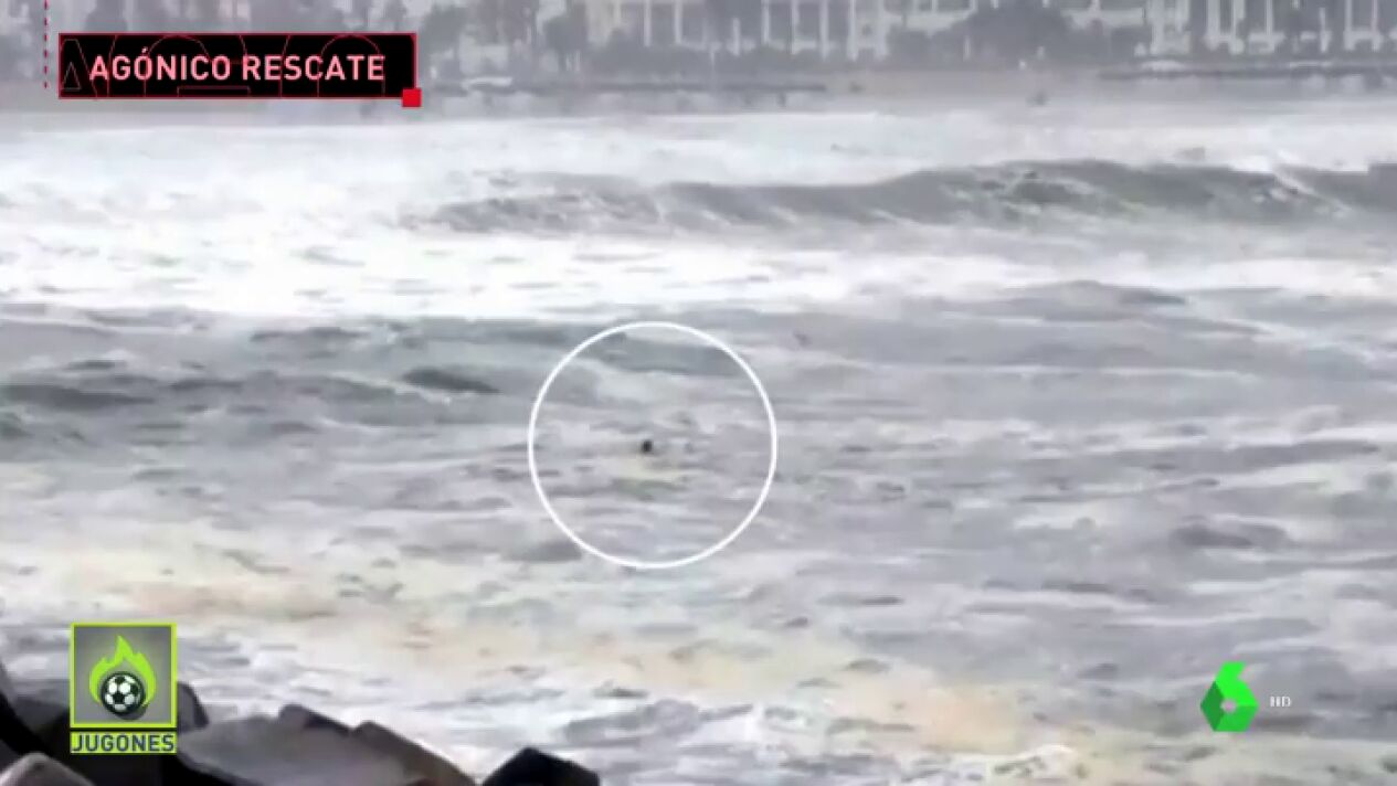 El fuerte viento y la fuerza de las olas provocaron que este nadador se metiese en el agua a las 7:30 de la mañana. Afortunadamente, fue rescatado casi cinco horas después.