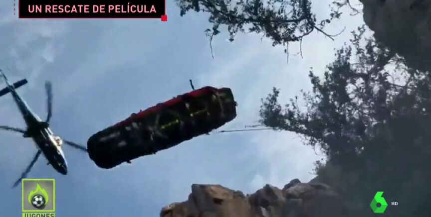 Sin duda alguna el rescate parecía de película. Tras su llamada, un helicóptero acudió a la zona y se coló entre las montañas. No fue ni mucho menos fácil, pues el fuerte viente y los arbustos complicaban la operación.