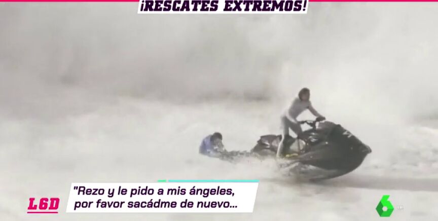 Pero detrás de esas cabalgadas épicas hay un hombre que salva a cada surfista cuando está en apuros. Se trata de Sergio Cosme, que con su moto de agua es como un ángel de la guarda para los surfistas.