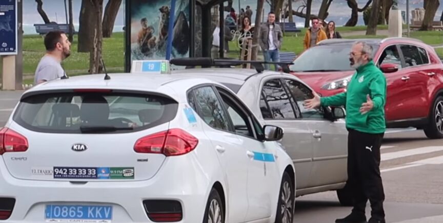 Tremenda pelea la que se ha grabado este fin de semana en las afueras del Sardinero, estadio del Racing de Santander. Un aficionado del equipo cántabro y un taxista se encararon en una pelea surrealista.