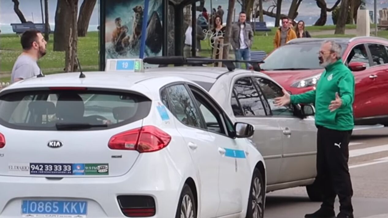 Una disputa de tráfico acabó en una riña que no deja indiferente a nadie. El aficionado se baja del coche y agarra de la camiseta al taxista, que no duda en bajarse de su vehículo para acabar rompiendo el retrovisor izquierdo de su 'rival'.