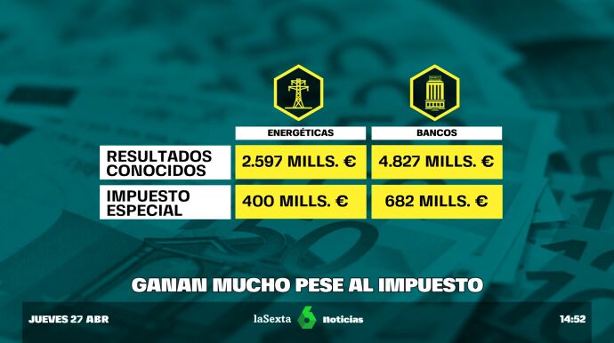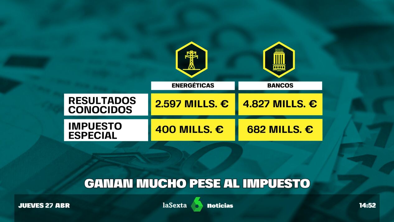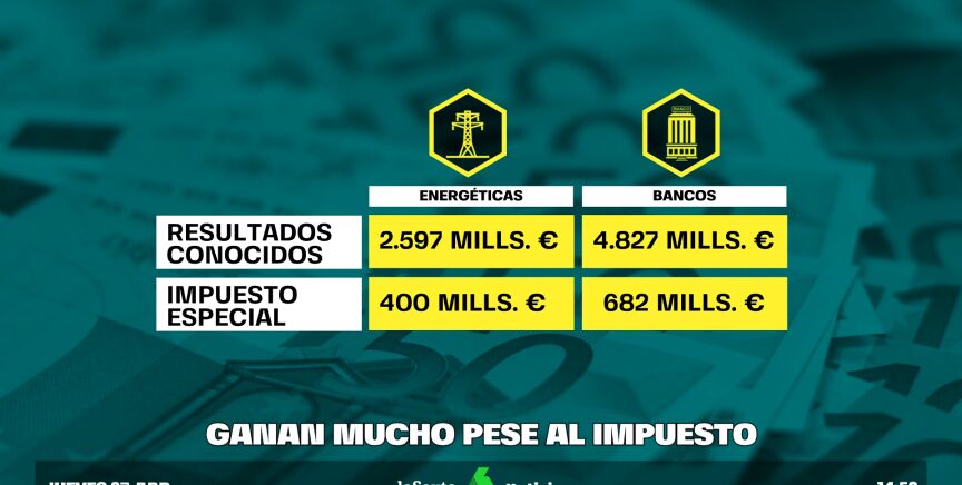 En total, las grandes energéticas se embolsan 2.500 millones, y cuatro de los seis grandes bancos casi 5.000, descontados ya los impuestos especiales por los que pagarán más de 1.000 millones. Figuras fiscales muy criticadas que representan alrededor del 15% de lo que han ganado.