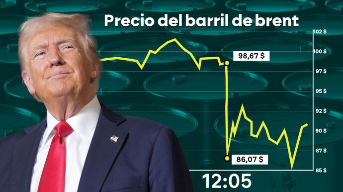 Sí, pero... El precio del barril de Brent ha bajado hasta los 96 dólares tras las palabras de Trump, aunque al final de la jornada ha vuelto a repuntar hasta los 103 dólares.