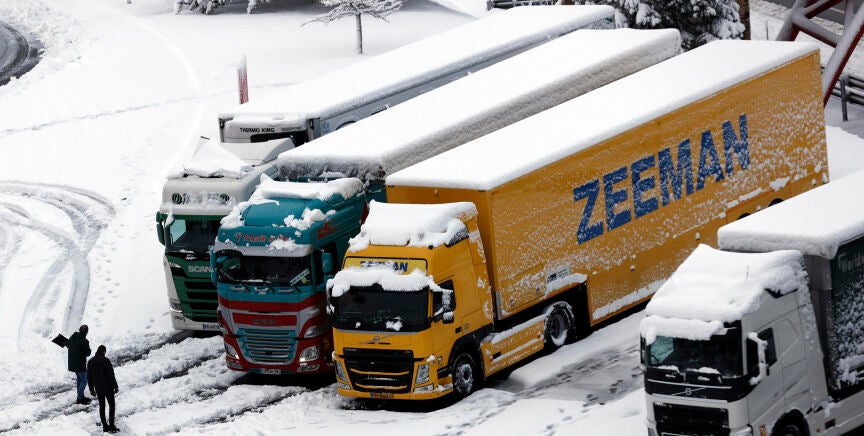 La borrasca Ingrid obliga a parar a centenares de camiones y pone en peligro el abastecimiento en supermercados de toda España