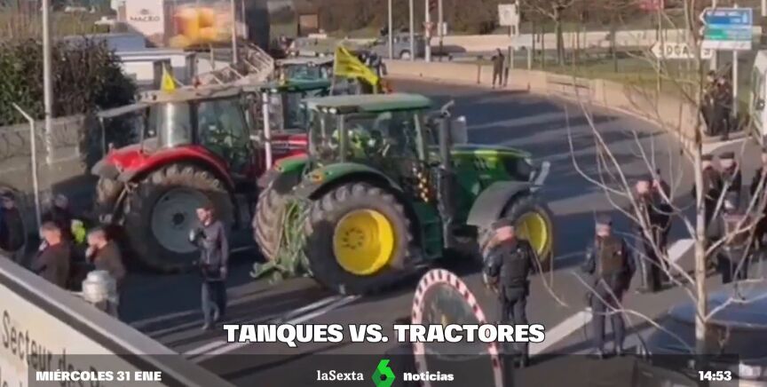 Los agricultores han aumentado la presiones en las carreteras francesas y buscan llegar a París. Hay miles de estos trabajadores bloqueando carreteras e intentando entrar en zonas que el Ejecutivo de Macron considera rojas. Mientras, la protesta se extiende a Bélgica y España.