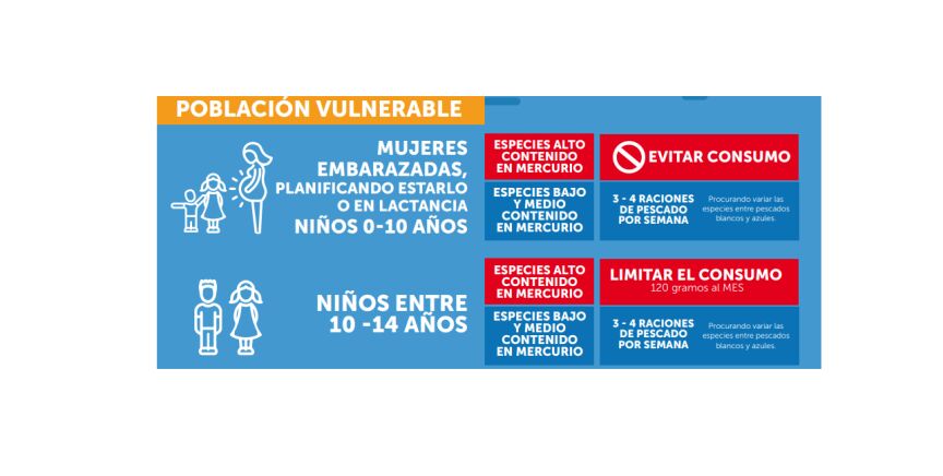 Se recomienda evitar el consumo de estas especies a las mujeres embarazadas, que estén planificando estarlo o en periodo de lactancia, así como a los niños de hasta 10 años. Para niños de entre 10 y 14 años, en cambio, la AESAN aconseja limitarlo a 120 gramos al mes.