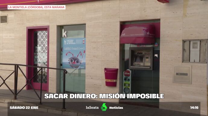En La Montiela (Córdoba) llevan poco más de una semana sin un lugar donde poder sacar dinero. Para cualquier gestión, tienen que desplazarse 15 o 20 minutos hasta Santaella, el pueblo vecino, que sí tiene el lujo de tener oficinas.