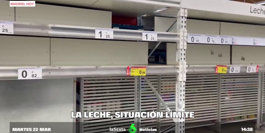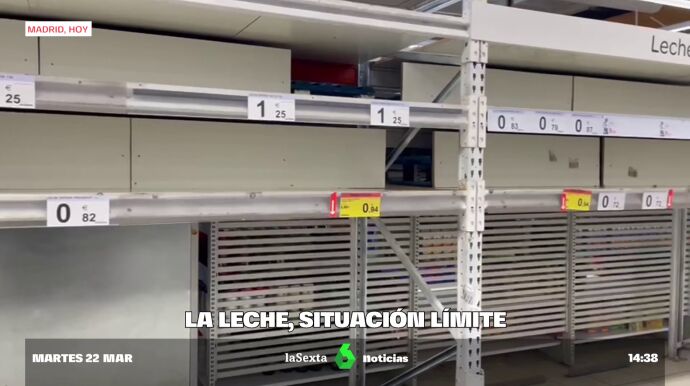 Fuentes de la federación nacional de industrias lácteas han informado de que el funcionamiento de las fábricas es "muy crítico" en Galicia, Asturias, Cantabria, Castilla y León, Castilla-La Mancha, Región de Murcia y Andalucía, con unos suministros de insumos bajo "mínimos". Una situación que ya se nota en los lineales de los supermercados, donde escasean los productos lácteos.
