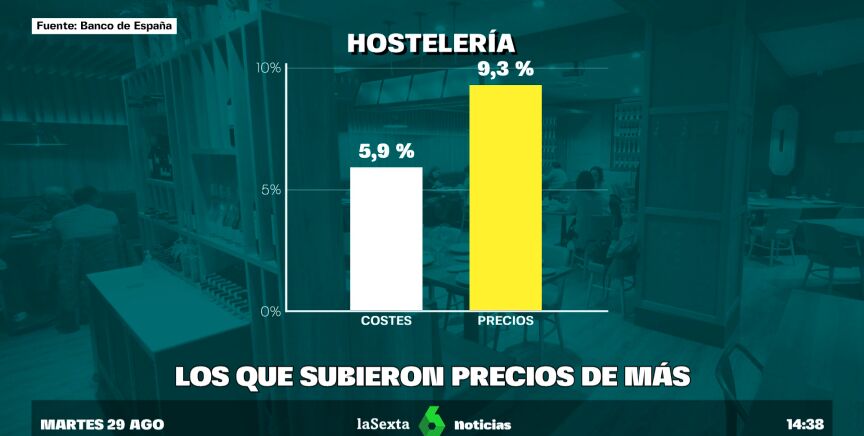El Banco de España ha publicado un informe que recoge qué sectores han aumentado más sus precios en el último año. Uno de los que lidera esta clasificación es el sector hostelero, con los precios de bares y restaurantes subiendo un 5,9% en el último año.