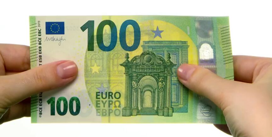La banda plateada también muestra el retrato de la princesa de la mitología Europa, el motivo arquitectónico y un símbolo '€' grande. Asimismo, los nuevos billetes de 100 y 200 euros incorporan un número verde esmeralda mejorado, en el que aparecen símbolos '€' dentro del dígito.