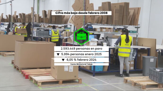 España ha mejorado sus datos de empleo en febrero, reduciendo el paro en 5.994 con un total de 2.593.449 desempleados, la cifra más baja para un febrero desde 2008. La afiliación a la Seguridad Social también ha crecido, con 100.340 nuevos ocupados respecto a enero, sumando un total de 21.196.154 trabajadores. Los sectores de educación, hostelería y construcción son los que más han contribuido a este aumento. El empleo femenino ha mejorado, con 48.509 nuevas cotizantes, superando nuevamente los 10 millones de afiliadas. El paro ha disminuido principalmente en los sectores de servicios, construcción e industria, y en comunidades como la Comunidad Valenciana, Cataluña y Andalucía.