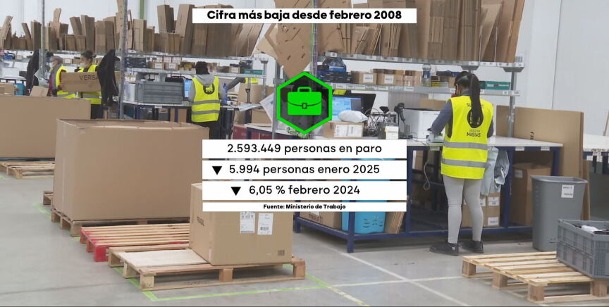 España sigue mejorando sus datos de empleo tras el tropiezo habitual del mes de enero y el paro ha seguido bajando en el segundo mes del año hasta marcar un nuevo récord, según los datos desvelados este martes por el Servicio Público de Empleo Estatal (SEPE). El número de personas desempleadas registradas en las oficinas de SEPE al finalizar el mes de febrero se ha reducido en 5.994 personas en este mes, dejando la cifra total de parados en 2.593.449 personas, la más baja en un mes de febrero desde 2008. Esto supone una caída de 166.959 personas con respecto a febrero de 2024.