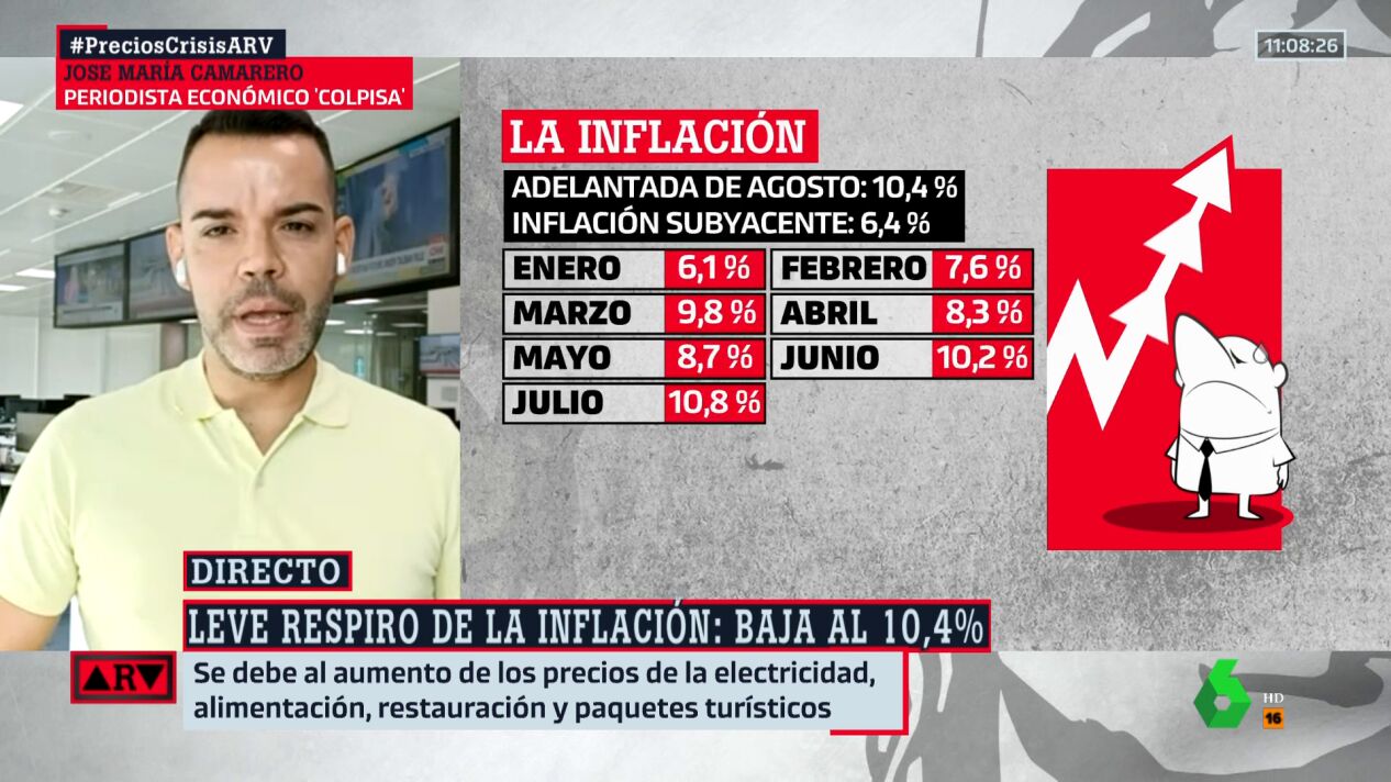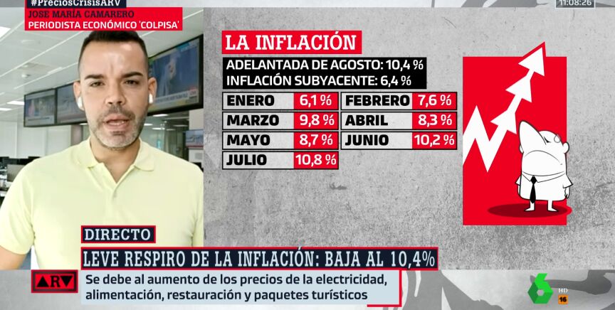 Tras tres meses consecutivos de subidas, esta moderación de los precios ya ha llevado a hablar de un posible techo de la inflación. Aunque no hay que cantar victoria todavía, según ha advertido José María Camarero, periodista especialista en Economía y colaborador de Al Rojo Vivo.