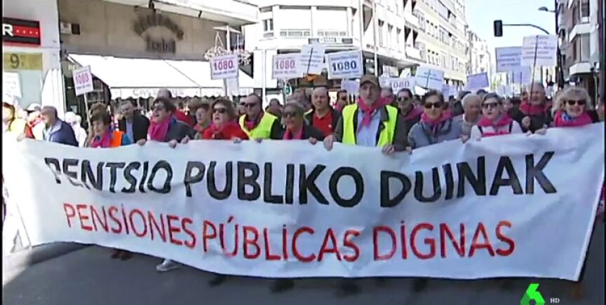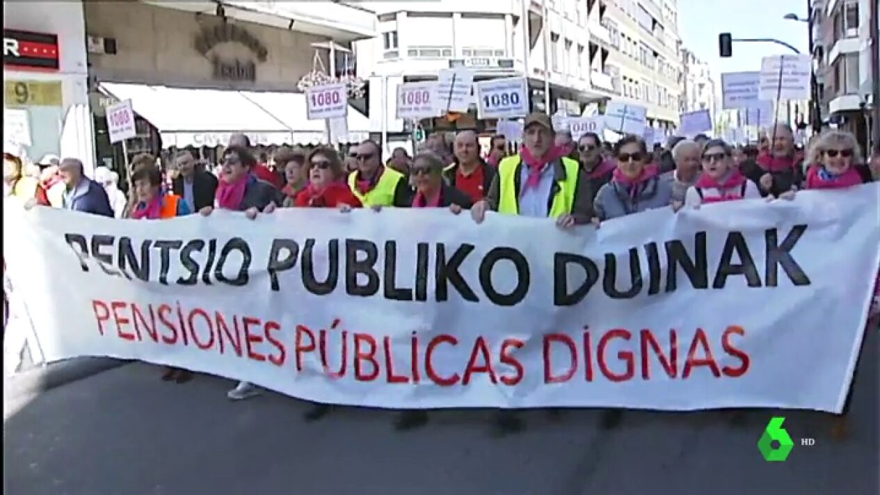 En plena campaña electoral, los jubilados piden, en ciudades como Bilbao y Barcelona, a los partidos políticos que garanticen el futuro de las pensiones blindándolas en la Constitución.