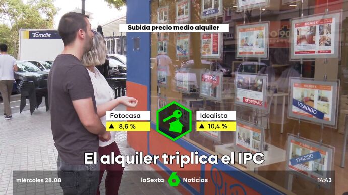 Según los principales portales inmobiliarios de España -Fotocasa e Idealista-, en julio de 2024 los inquilinos pagaron entre un 8 y un 10% más de media, muy por encima de la inflación, que se situó en el 3%. En términos de renta supone que alquilar un piso de 80 metros cuadrados cuesta ya más de 1.000 euros al mes.