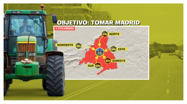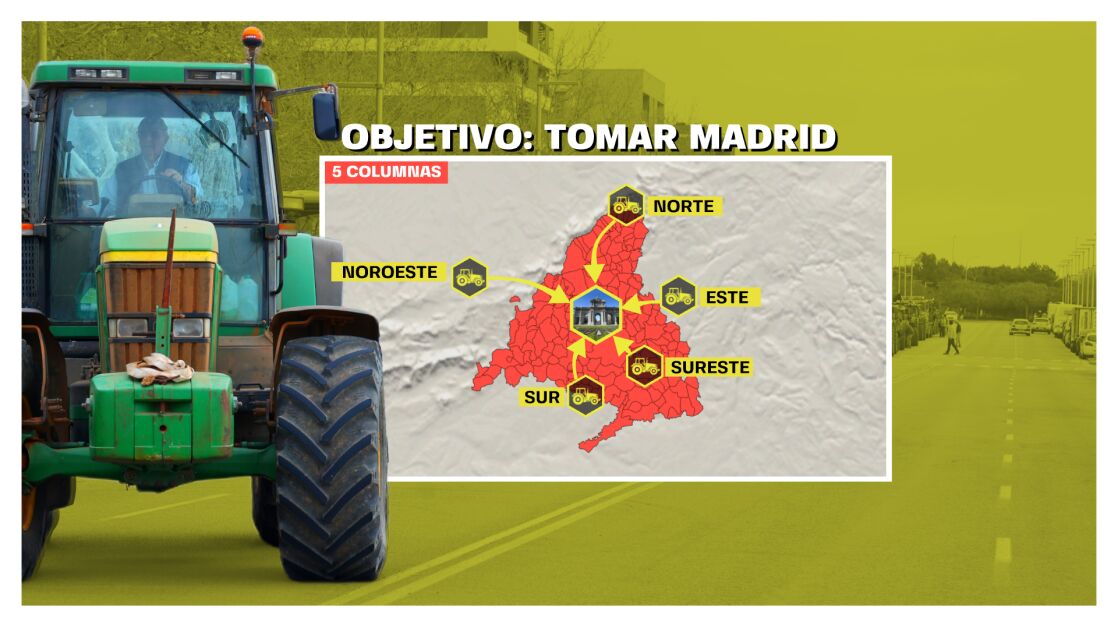 El martes salieron los tractores desde diferentes partes de España con los manifestantes, que pasaron la noche en municipios cercanos a Madrid. A primera hora de este miércoles han empezado las cinco columnas de manifestantes a acercase a la capital. Sobre las 9:30 de la mañana un grupo de agricultores ha cortado la A-42 a la altura de Torrejón de la Calzada,