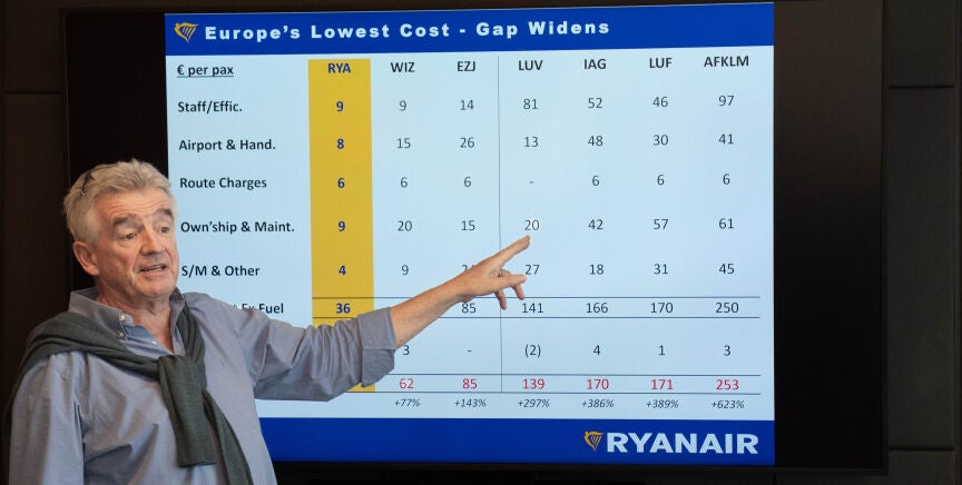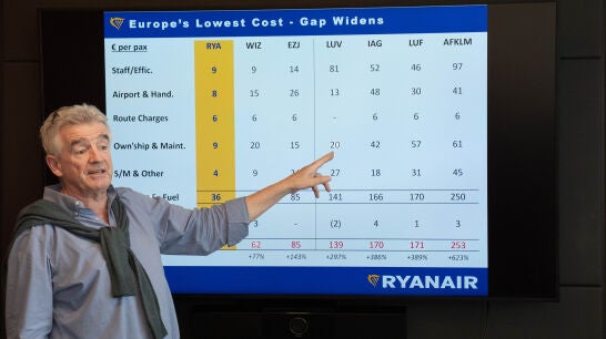 El consejero delegado del grupo Ryanair, Michael O'Leary, ha indicado en rueda de prensa que la compañía sigue apostando por crecer en España pero no en los aeropuertos regionales debido las políticas económicas del Gobierno y de Aena en estas infraestructuras
