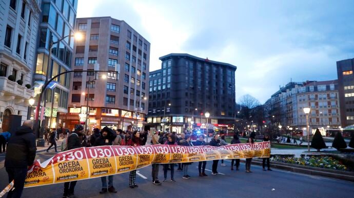 En Bilbao, Bizkaia, varios piquetes han cortado la Avenida Bilbao con pancartas. De momento, los sindicatos organizadores han señalado que la huelga general está teniendo un "amplio seguimiento".