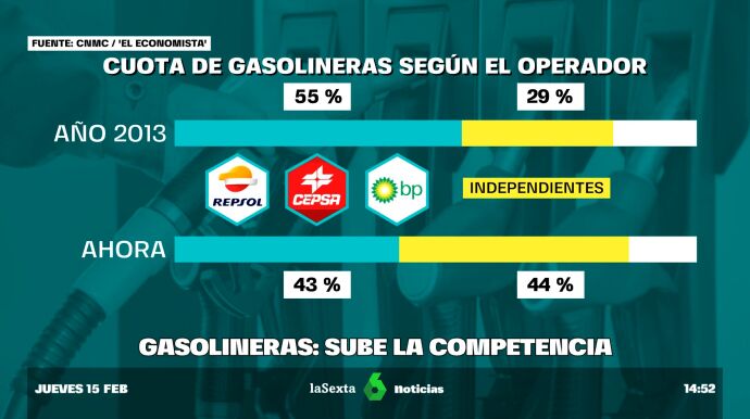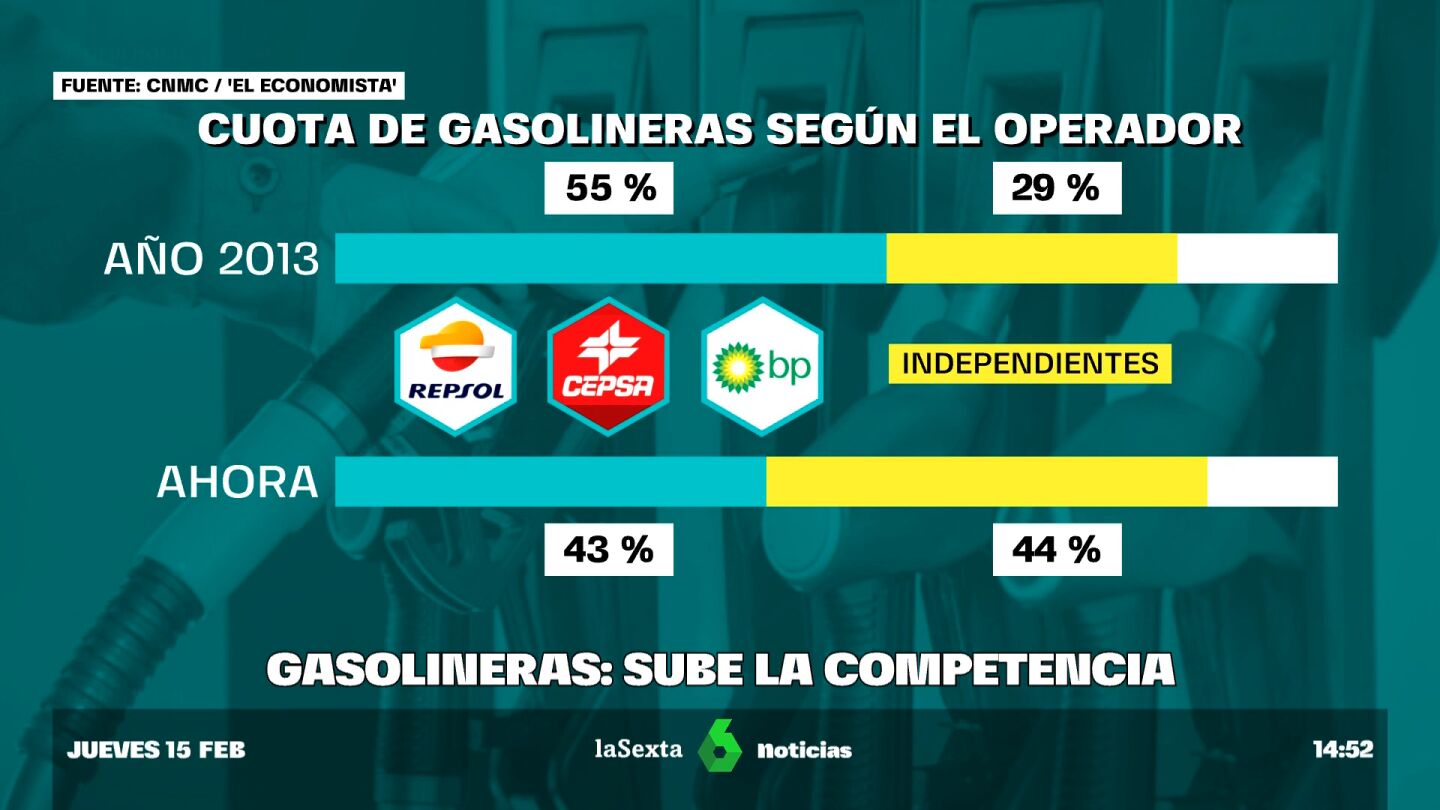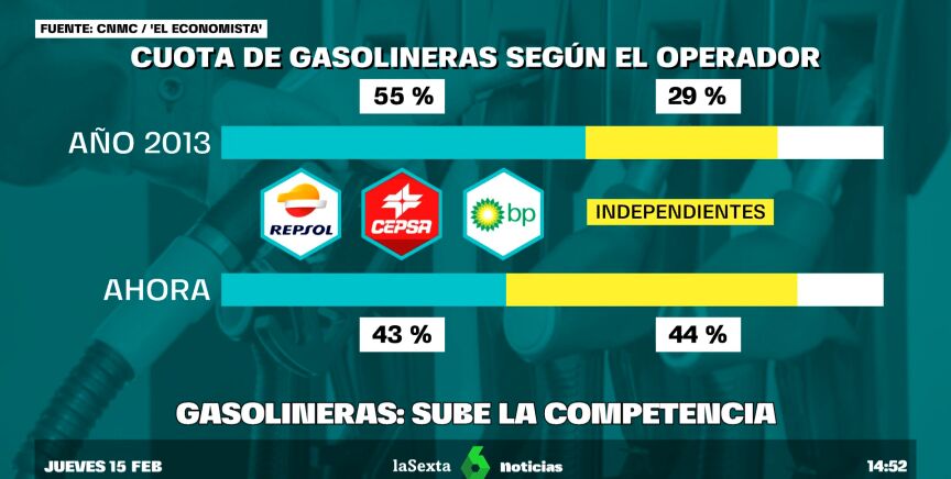 Los combustibles se han marcado un suelo en el euro y medio el litro y frente a ello los conductores se decantan por intentar buscar opciones más competitivas. Tanto es así que el mercadoha dado un vuelco: por primera vez hay más estaciones de servicio de marcas independientes que de Repsol, Cepsa y BP, las tres petroleras que, paradójicamente, se encargan de refinar el producto en España.