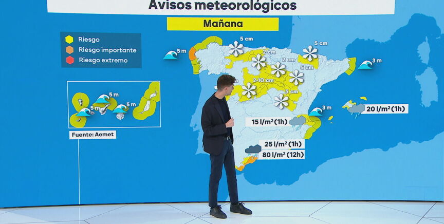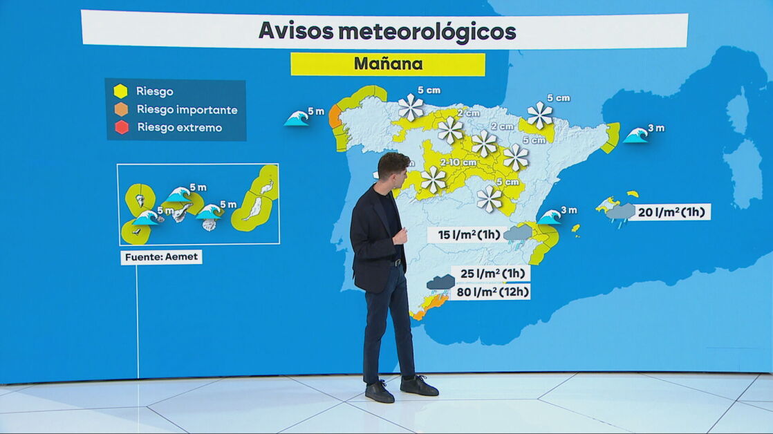 Eso sí, el aviso especial es por un temporal de nieve que comenzará este domingo por la tarde. Castilla y León, Aragón, el interior de Cataluña y Castellón esperan nevadas este domingo cuya mayor intensidad será durante la madrugada del lunes, momento en el que también podrían verse en Madrid y el noreste de Castilla-La Mancha.