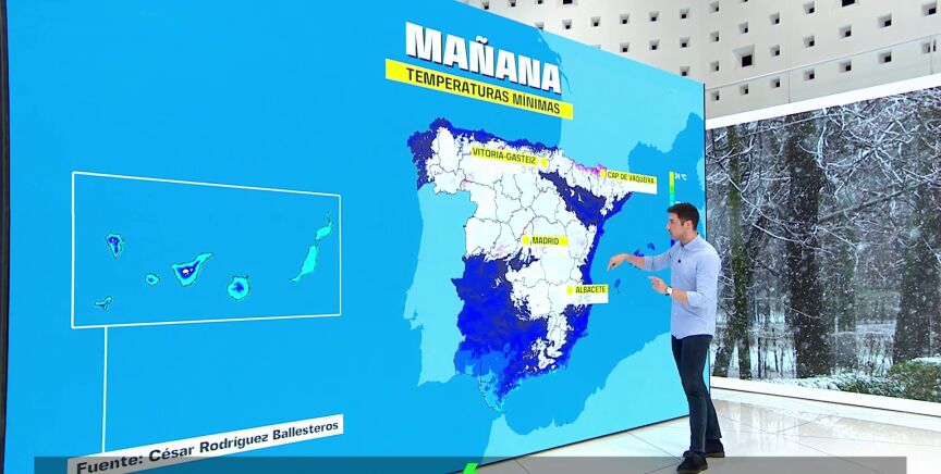 En lo referente a la previsión de este sábado, el meteorólogo ha indicado que se esperan precipitaciones en Navarra, Euskadi, La Rioja, Pirineos y Cantabria, mientras que en el resto de la Península hará sol. Además, en Cataluña y Baleares están en aviso por oleaje y fuerte viento, que ya ha alcanzado los 100 kilómetros por hora.