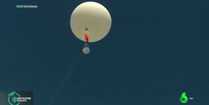 A simple vista parece un globo normal. Pero trasmite los datos de un aparato que lleva colgado y mide datos de temperatura, de humedad, de la presión y del viento que hay en las diferentes capas de la atmósfera.