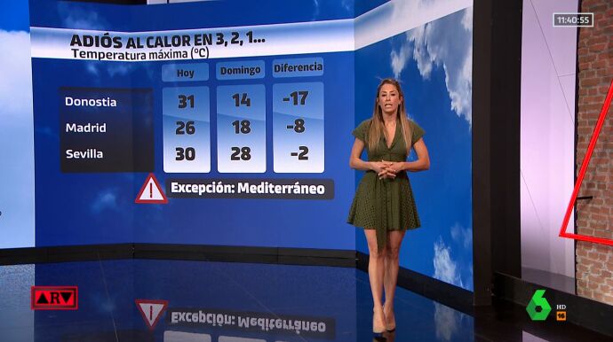 En Donostia pasarán de los 31 grados a los 13 el domingo; en Madrid de los 26 grados a los 17; y en Sevilla de los 30 a los 16 grados. Un descenso que se notará en varias partes del país con una excepción: el Mediterráneo. Aquí, las temperaturas comienzan a subir a partir de hoy.