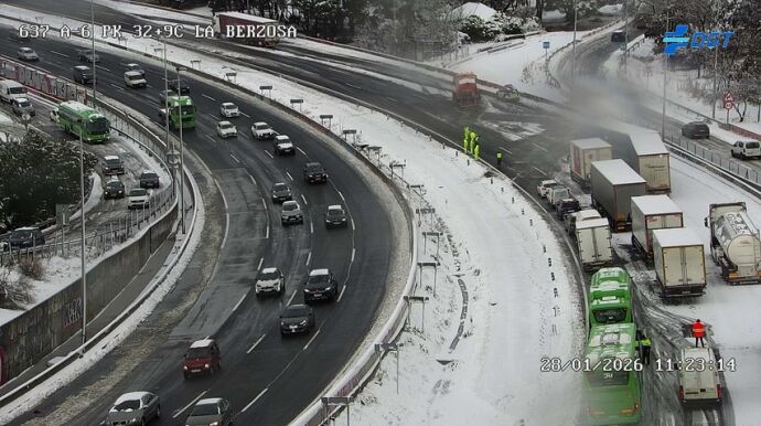 La Dirección General de Tráfico (DGT) ha advertido de que una de las vías principales de la Comunidad de Madrid, la A-6, está "intransitable" entre el Plantío hasta las provincias de Segovia y Ávila. Además, hay otras 70 carreteras en todo el país afectadas por la nieve.