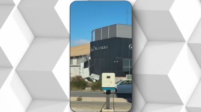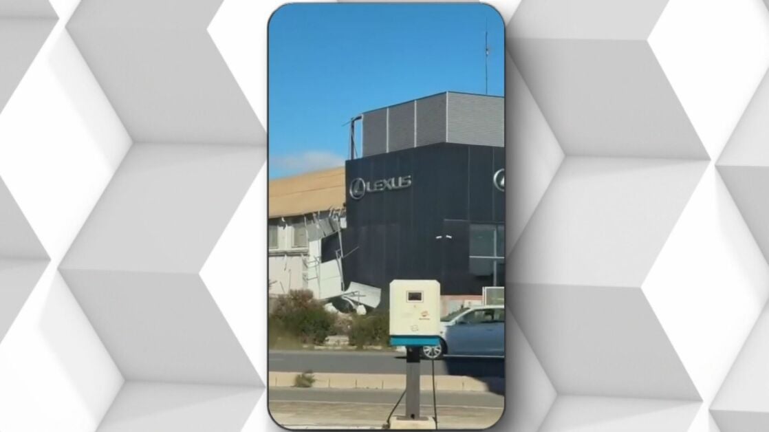El intenso temporal que pasa por España está dejando imágenes poco habituales en la península, con el viento como protagonista. Así intentan resistir estas carpas a las fuertes rachas en Vinaròs, en Castellón. La valla que rodea un polideportivo amenaza con salir volando. También en Castellón, los bomberos recogen un amasijo de hierros y ladrillos en una azotea.