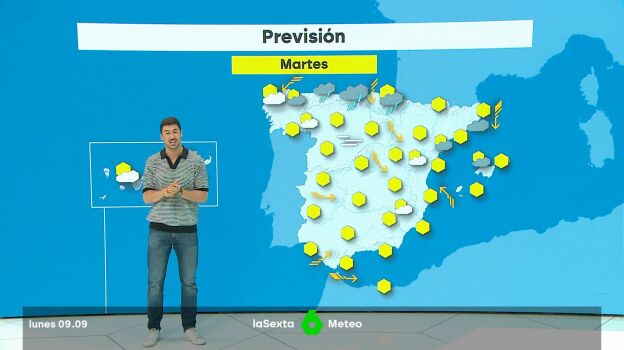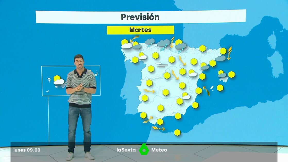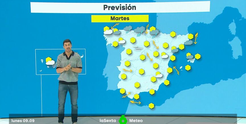 En cuanto a las temperaturas, habrá "pequeños cambios": bajarán 4º en la zona de Asturias y Cantabria y 2º en el País Vasco, en la zona del Mediterráneo y también en la parte mediterránea de Andalucía, pero prácticamente serán en todo el país muy parecidas a las del lunes (9 de septiembre).