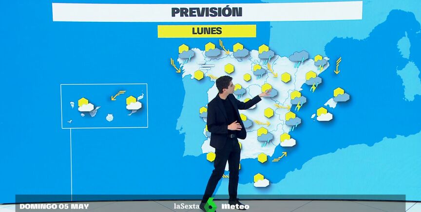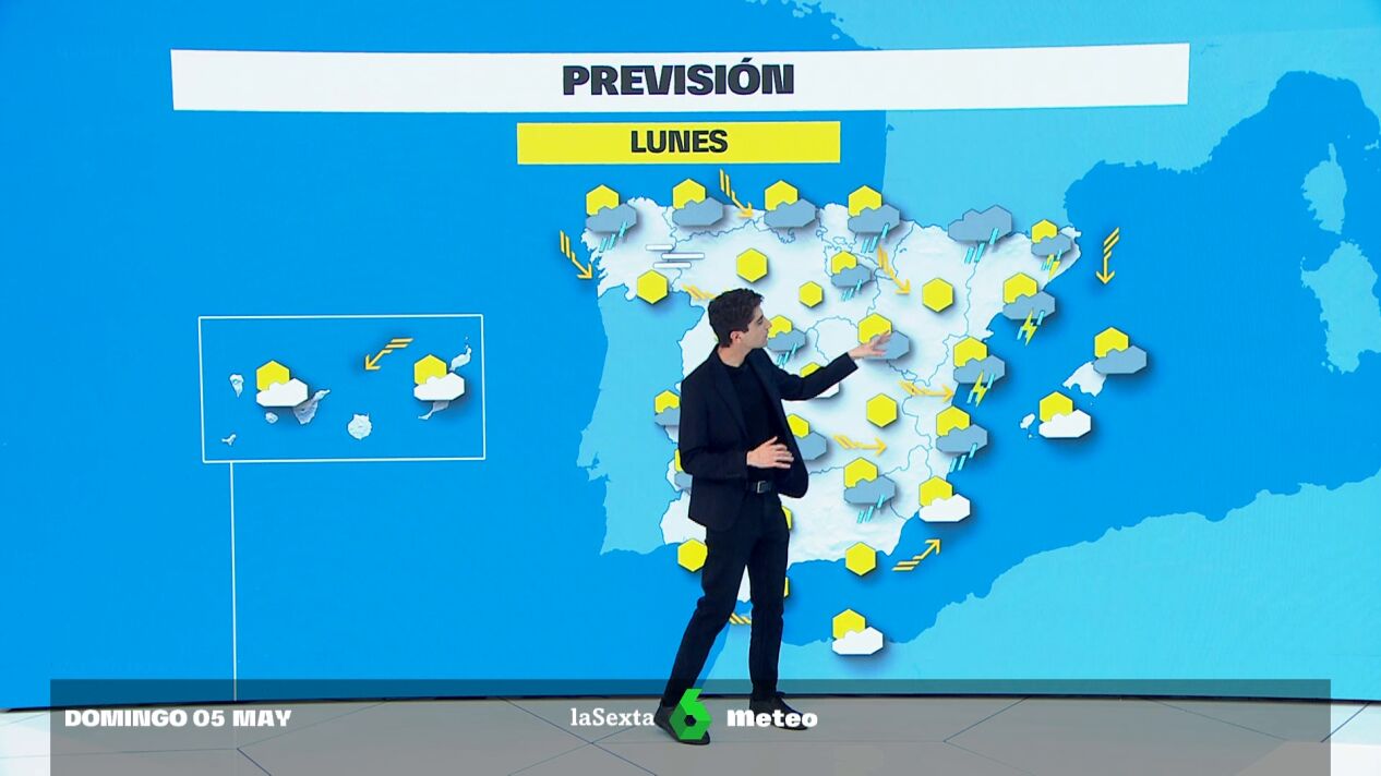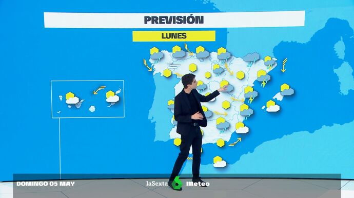 La semana comienza con lluvias. Para este lunes, 6 de mayo, se prevé lluvias principalmente en el este y noreste peninsular y en el Mediterráneo, pudiendo haber tormentas especialmente intensas en las provincias de Castellón y Girona. También habrá nubes y chubascos en el resto de la península, sobre todo en la mitad norte.