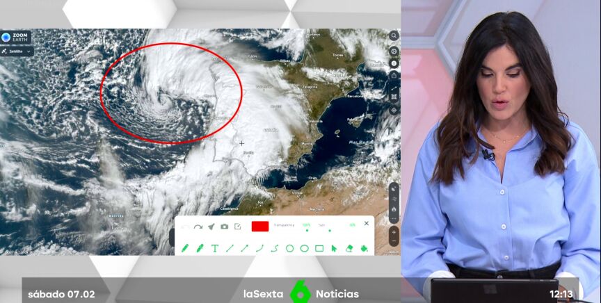 Marta, una nueva borrasca, irrumpe con fuerza. En la imagen de satélite se puede observar perfectamente su centro, justo enfrente de Oporto. Tras la marcha de la borrasca Leonardo, preocupa especialmente los efectos de Marta sobre la Comunidad de Madrid, el valle del Guadalquivir y el golfo de Cádiz. "Por ahí está entrando el primer sistema central de la nueva borrasca, dejando ya muchísima precipitación. En el golfo de Cádiz hay riesgo de que se produzcan mangas marinas y tornados", explica Joanna Ivars, que apunta que esa cabecera acabará impactando con la zona montañosa de Grazalema (Cádiz).