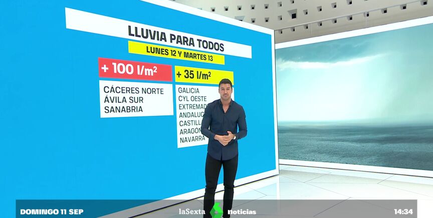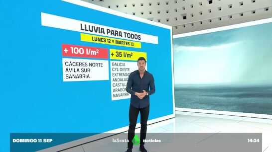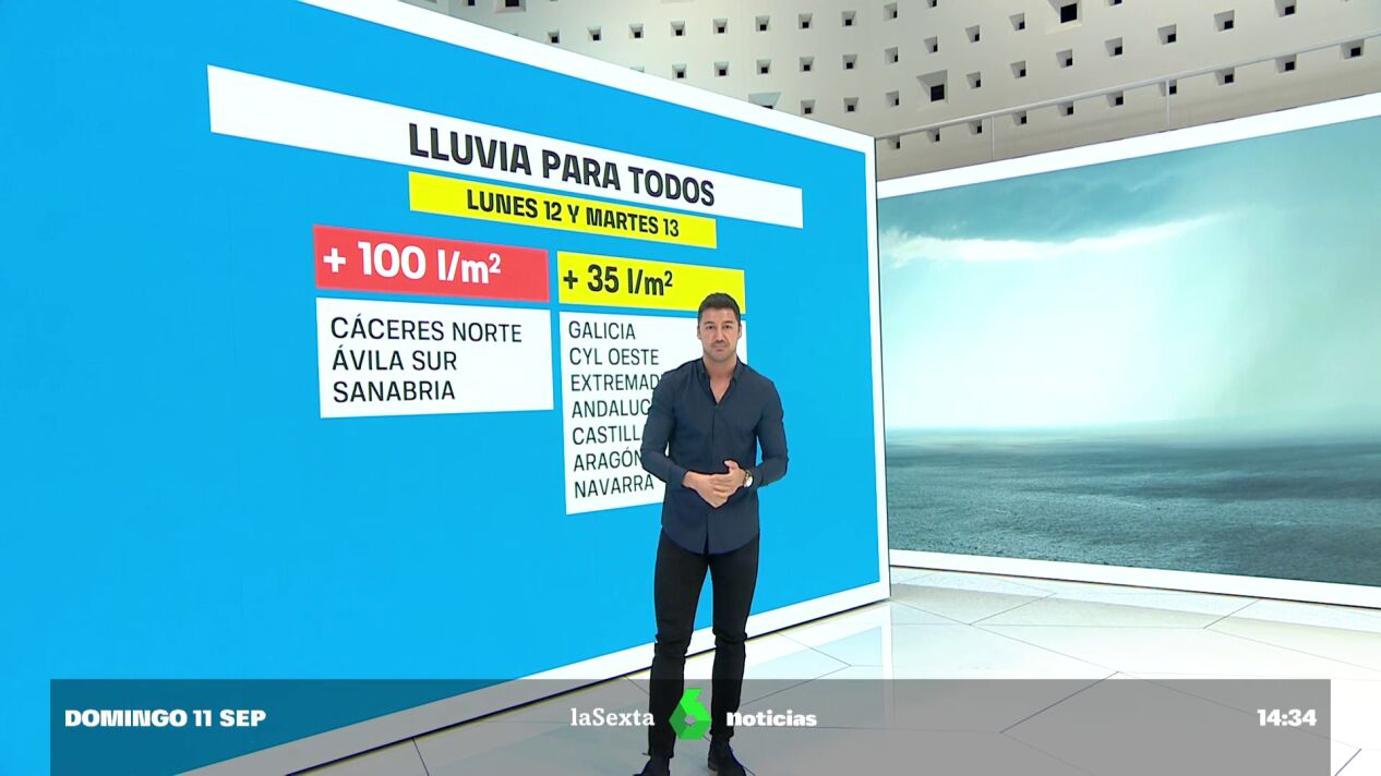 En lo referente a las lluvias, la borrasca Danielle va a dejar precipitaciones a partir del lunes y del martes en gran parte de España. En el norte de Cáceres, en el sur de Ávila y en Sanabria podrán dejar más 100 litros por metro cuadrado. Cabe recordar, en este sentido, que Sanabria se ha visto afectada este verano por los incendios, por lo que el suelo está más impermeable y puede haber escorrentía.