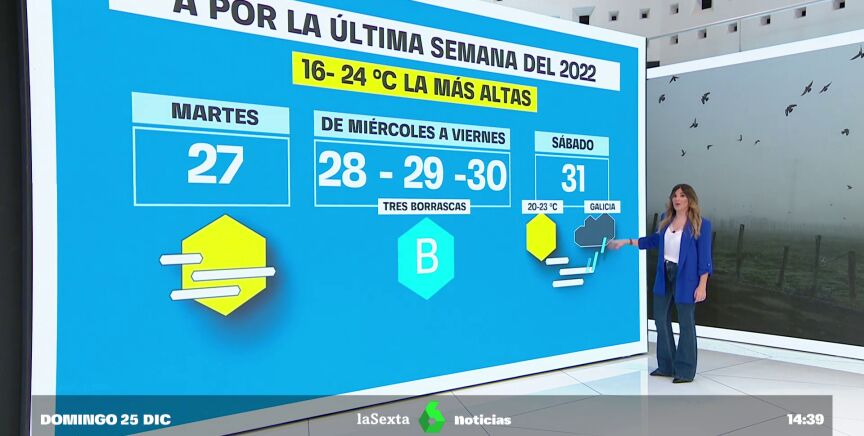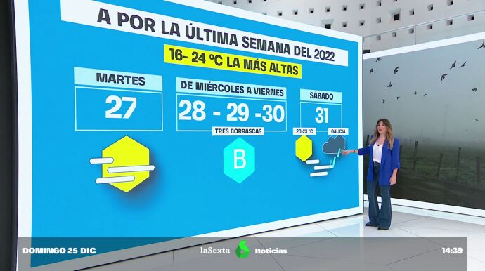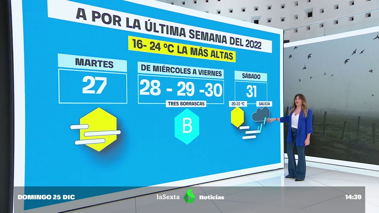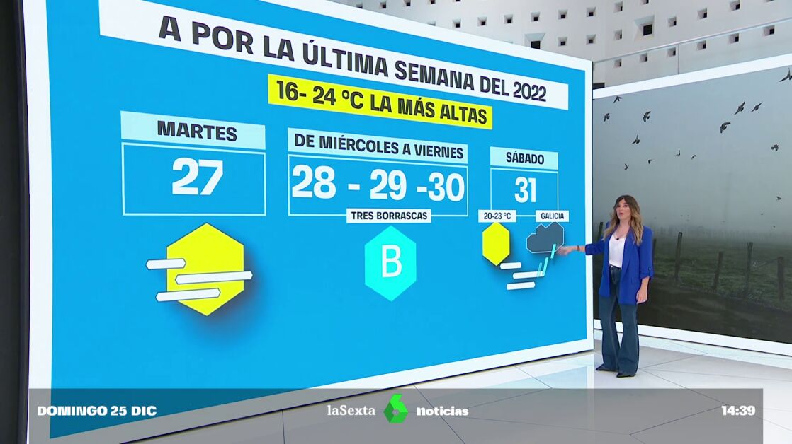 La lluvia no da tregua en Galicia y la niebla continúa en el centro del país. Además, las temperaturas máximas y mínimas siguen entre cinco y diez grados por encima de lo normal en el Mediterráneo, donde las máximas han superado los 24 grados, disfrutando así de una Navidad de sol y playa.