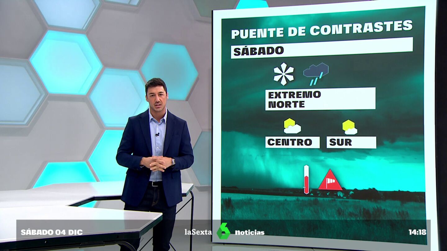 Este puente de diciembre va a estar marcado por un tiempo de contrastes. Mientras que en el norte seguiremos recibiendo algunos frentes que nos van a dejar nubes, lluvias, y nevadas, en la mitad sur de España y en el Mediterráneo el cielo va a estar bastante despejado y con temperaturas que rozan los 20 grados.