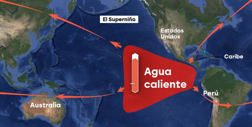 Unas que pueden quedar en nada con las que podrían llegar este año. El motivo, un fenómeno llamado 'Superniño'. Podría parecer algo en plan Marvel pero no, no lo es. Es algo que lleva consigo que el agua cálida del Pacífico que suele moverse hacia Australia se quede estancada. Eso es el 'niño'. El 'Superniño', mucho más. Porque es un 'niño' llevado al extremo. provocando un calentamiento más potente en el Pacífico que tendrá impacto en casi todo el mundo y que alterará el clima de todo el planeta.