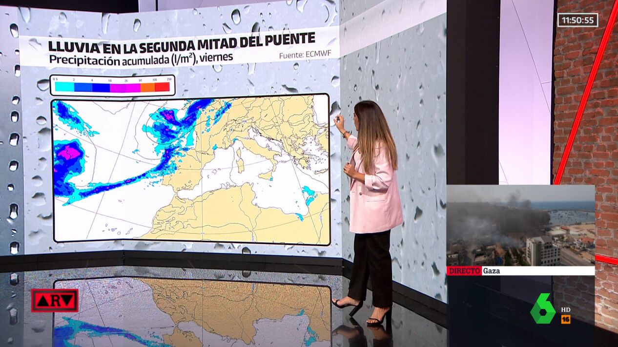 Así, el viernes se romperá la dinámica de los últimos once días. Una borrasca dejará lluvia en el noroeste peninsular (Galicia y Asturias), el oeste de Castilla y León, Extremadura y podría llegar a Cantabria. El domingo tocará tierra una borrasca en Galicia dejando lluvia en la última parte del puente en la mitad oeste.