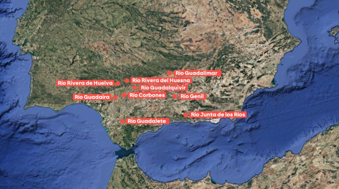 Andalucía está siendo la comunidad más afectada y actualmente tiene más de 30 embalses que descargan agua de forma masiva para aliviar la presión del agua. Además, nueve ríos de esa comunidad se encuentran en nivel rojo, el de mayor peligrosidad.