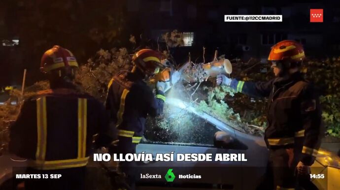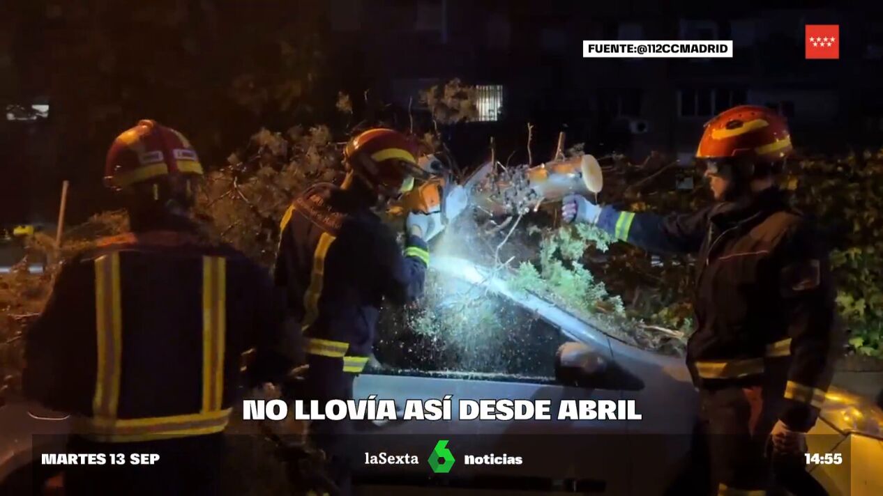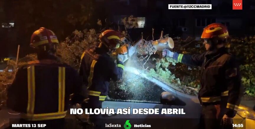 Así, en la capital los Bomberos han realizado más de un centenar de intervenciones relacionadas con la lluvia en las últimas horas e incluso han tenido que retirar un árbol de gran tamaño caído a primera hora. El viento ha provocado destrozos por la caída de ramas y árboles sobre vehículos en Pozuelo de Alarcón, tal y como puede verse en el vídeo que ilustra estas líneas.