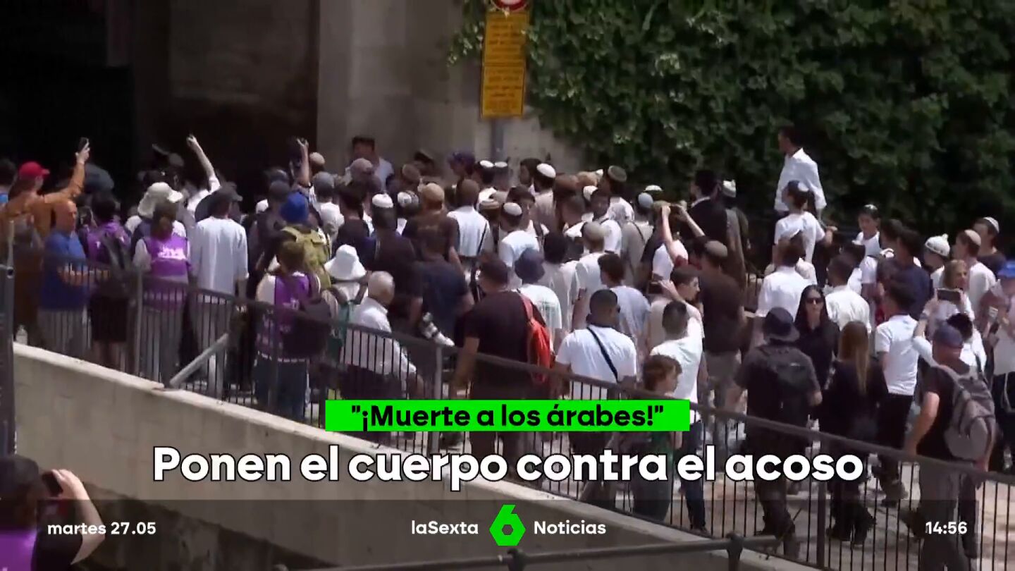 Poniendo su cuerpo para proteger a los palestinos de los ultraderechistas israelíes. Así actuaron este lunes los voluntarios de 'Standing Together', un grupo pacifista que aboga por la convivencia entre musulmanes y judíos en Oriente Medio, durantela celebración del Día de la Bandera de Israel.