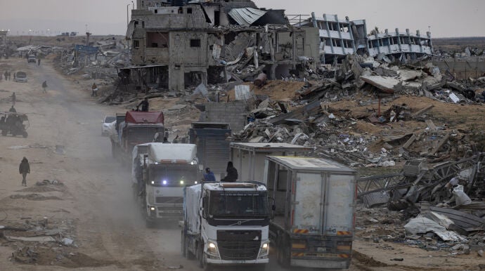 Decenas de camiones cargados de ayuda humanitaria han entrado ya en Gaza. Su llegada irá en aumento durante los próximos días.