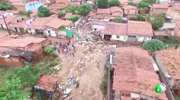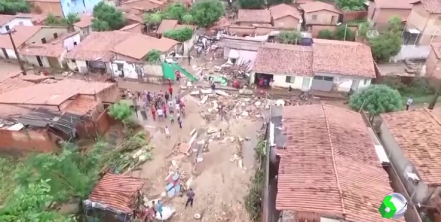 Algunas casas de la ciudad brasileña de Teresina han quedado reducidas a escombros, tras las fuertes lluvias de los últimos días. Al menos tres personas han muerto.