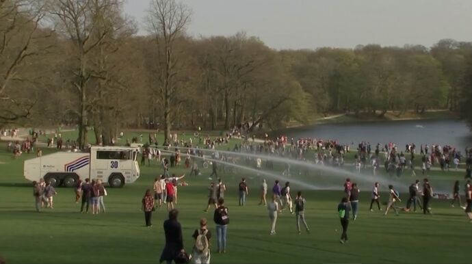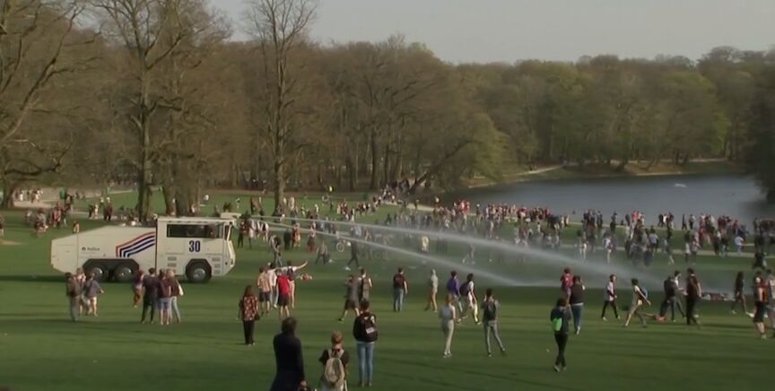 Los incidentes tuvieron lugar en el parque Bois de la Cambre, en el sur de la ciudad, donde la Policía desplegó cañones de agua y policía montada a caballo para intentar dispersar a los presentes. Los enfrentamientos estallaron después de que los agentes pidieran a la gente que abandonara la zona.