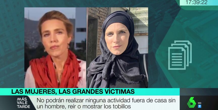 La periodista se ha visto obligada a cambiar un tanto su atuendo a la hora de informar sobre la situación en el país afgano con la imposición de la ley islámica de los talibanes.