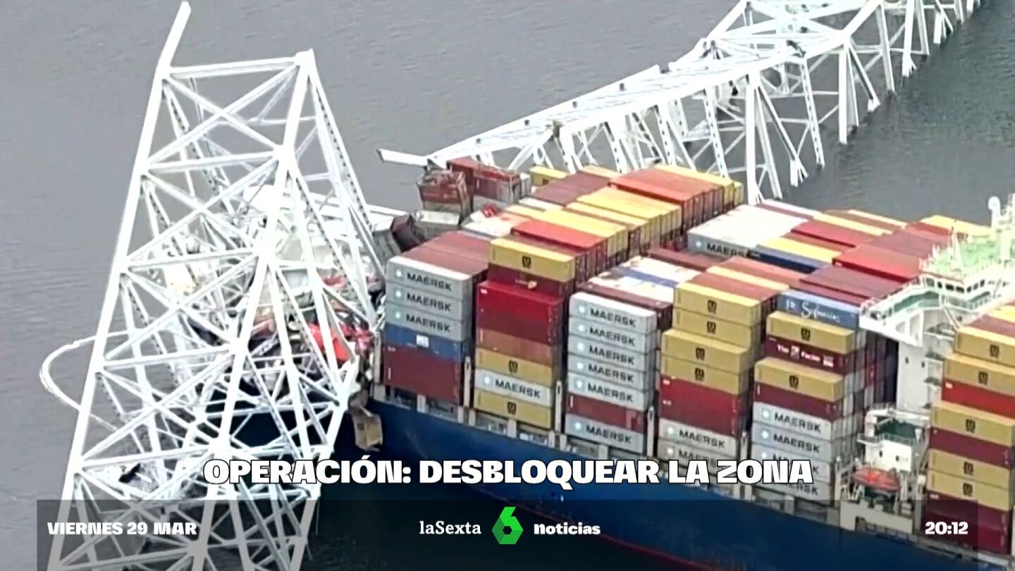 Mil ingenieros y tres buques de carga: la compleja operación para limpiar la zona del puente de Baltimore