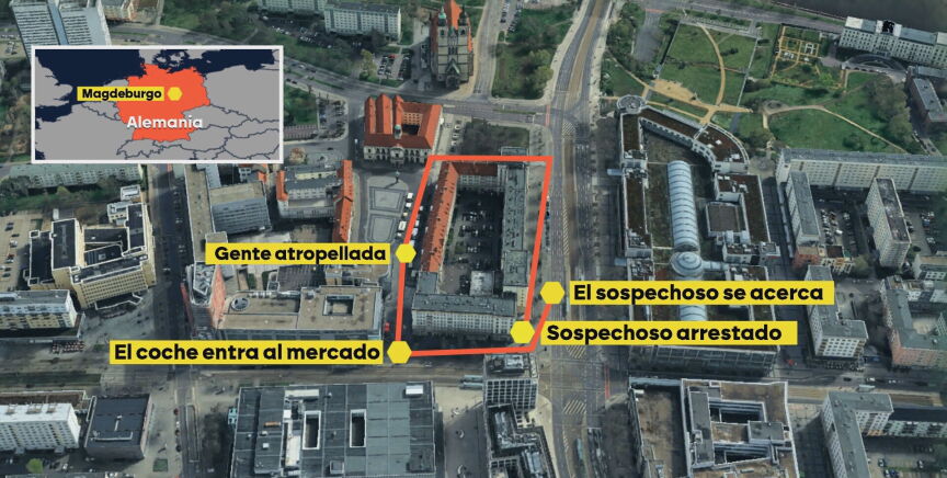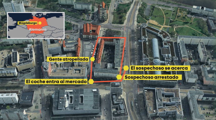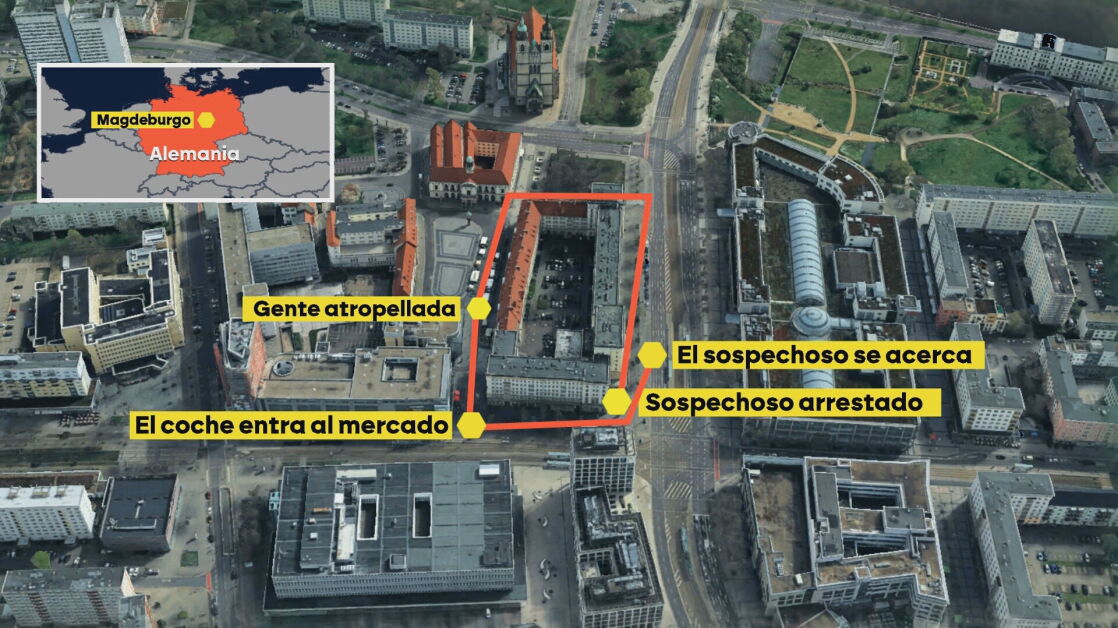 Taleb Al-Abdulmohsen, el principal sospechoso del atropello masivo ocurrido en un mercadillo navideño de Magdeburgo (Alemania) el pasado viernes, el cual ha dejado un balance de cinco muertos y 200 heridos, se acercó con su coche por una vía principal sorteando semáforos, saltándose un paso de peatones y accedió al mercado por una entrada para vehículos de emergencia. Una vez en el interior de la feria, se desató la tragedia. Sin ningún tipo de reparo, aceleró en una calle peatonal e invistió puestos ambulantes y a personas, entre ellas menores.
