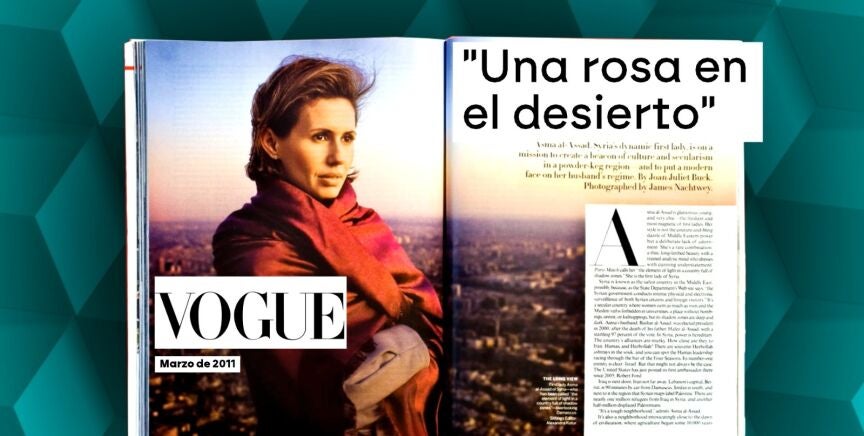 La revista 'Vogue' la bautizó en su día como una "rosa en el desierto", pero Asma Al Assad era -o al menos pretendían que fuera- el arma no tan secreta, pero sí muy prefabricada, de la ahora depuesta dictadura siria para blanquearse. Su elección como esposa de Bashar Al Assad fue una operación calculada al milímetro para vender al entonces recién estrenado presidente como un mandatario moderno y abierto al mundo. Pero esta "rosa" escondía espinas.